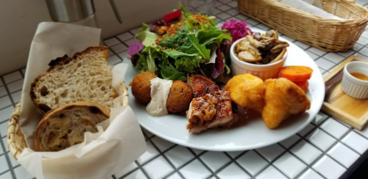 cafeB&B ククム offers a seasonal menu that showcases the best of local ingredients. Customers rave about the delicious lunch combinations, particularly the '今日の一皿' (Today's Dish) which includes a delightful mélange of fresh vegetables like carrots and ginger, paired with succulent ripe pineapple - a dish that perfectly captures the essence of summer with its refreshing taste. The golden crusty breads are a must-try as well; the bakery's hard-type loaves, adored by many, are characterized by their chewy texture and bursting with flavor, making them a perfect accompaniment to your meal.